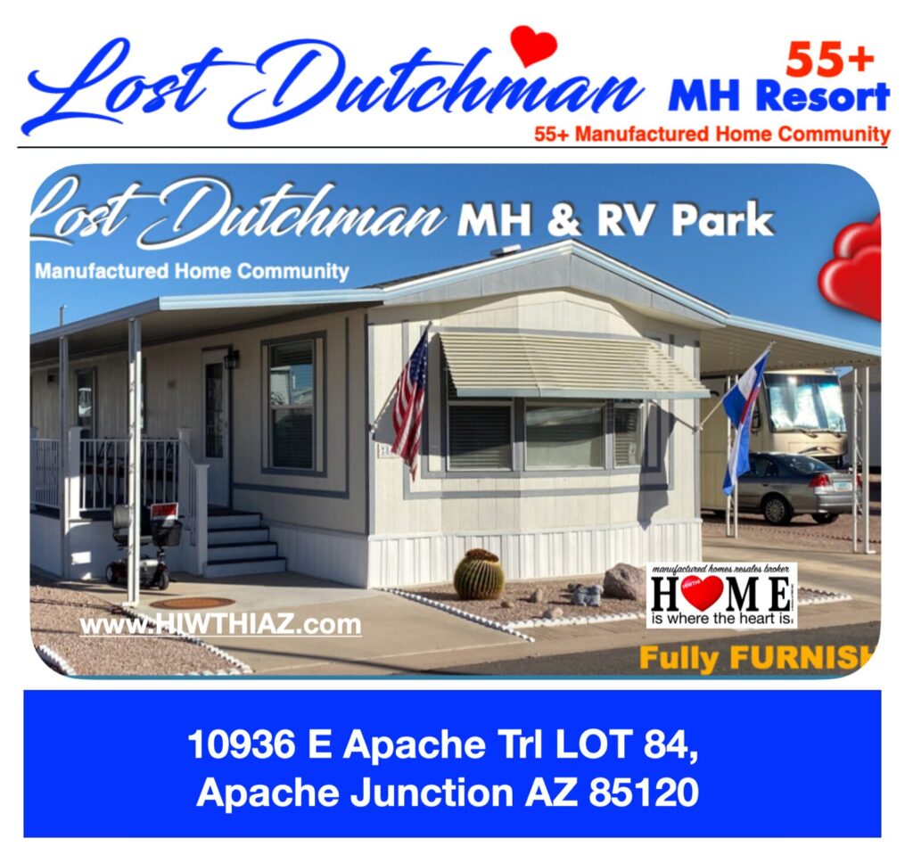• FOR SALE: 10936 E Apache Trl LOT 100 Apache Junction AZ 85120 Lost Dutchman MH Resort