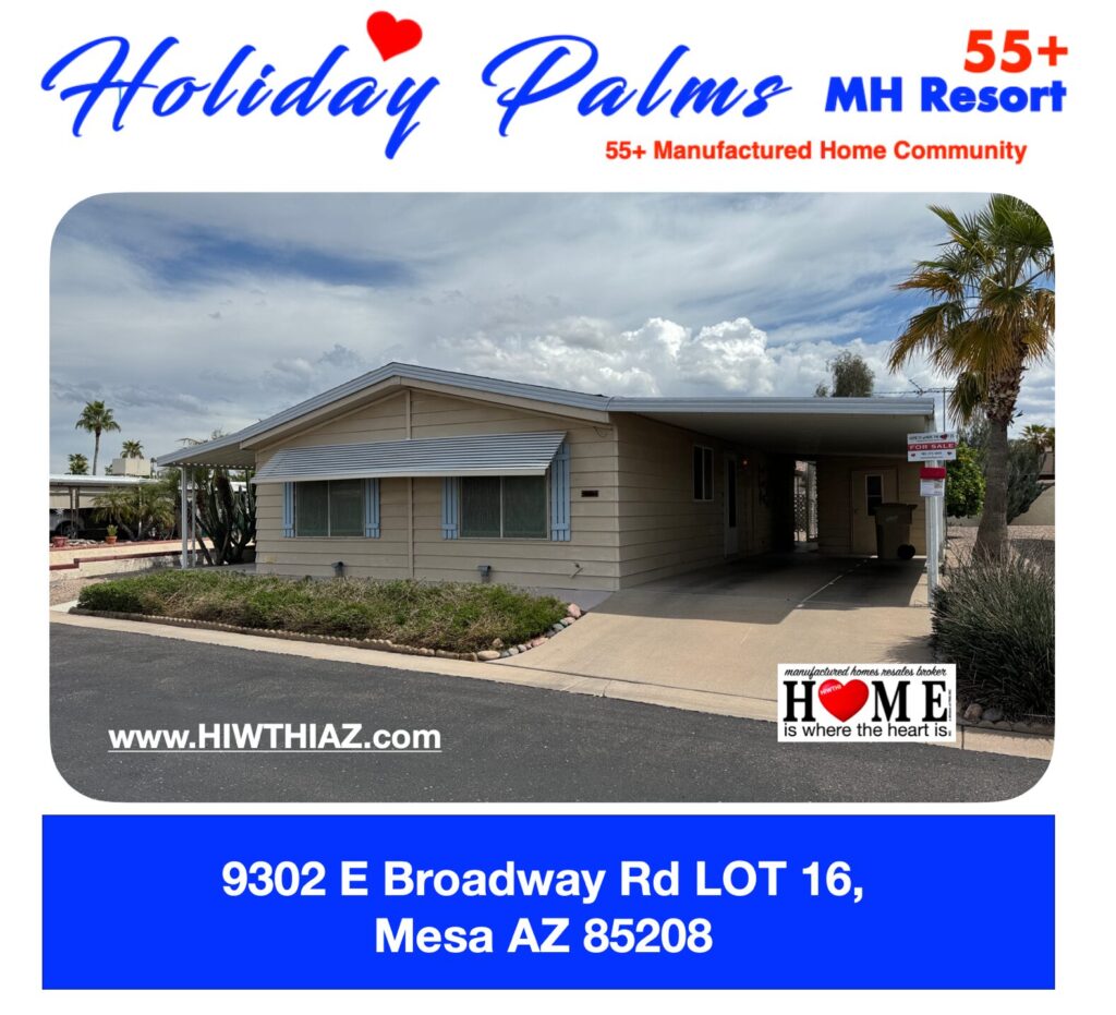 SOLD: 9302 E Broadway Rd LOT 16 Mesa AZ 85208 Holiday Palms July 31, 2024January 19, 2026FWS SOLD ON 7/31/2024 for $47,000 Your SOLD Home Should Be Listed On This Page…Call Me When You Are Serious About Selling Your Home