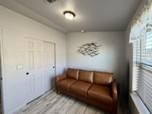 Guest Bedroom With Side Table & Chair. Accommodates Queen Bed & Dresser. Large Closet.