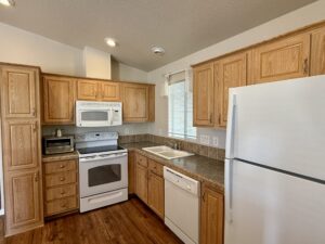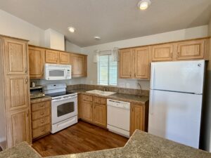 Kitchen Features Wrap-Around Counter Top With Ample Upper/Lower Storage Cabinets, Sink With Window, Electric Range, Dishwasher & Refrigerator. Pantry Cabinet and Extra Storage Shelves. Built-In Desktop Space Perfect For A Computer/Office Setup.