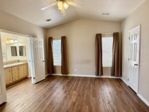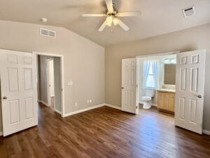 Main Bedroom Accommodates King Bed, Chest & Nightstands. Wide Walk-In Closet.