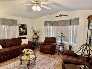 3 Bedroom, 2 Bath, Plus Den…2006 Fleetwood on Lot 1061 situated in friendly Lost Dutchman 55+ MH Resort, with Western Exposure. 24 x 56