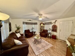 Living Room Accommodates 2 Sofas, Recliner, Occasional Tables, Coffee Table, TV on Console.