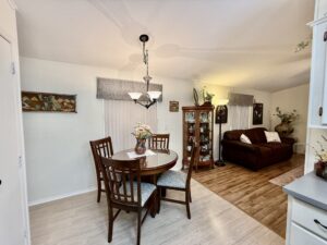 Kitchen Features Refinished Counter Tops, Lots of Painted Upper & Lower Storage Cabinets, Pantry Cabinet, Electric Range, Dishwasher& Refrigerator. Large Dining Area With Table, Four Chairs, 2 Bakers Racks & Box Bay Window.