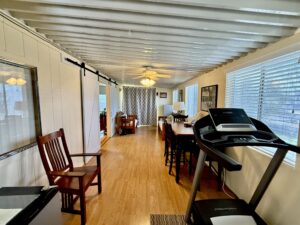 East Facing2 Bedroom, 2 Bath Plus Bonus Room/Den With 2 Car Northside Carport…1984 Progressive on Lot 184 Situated In Friendly Sun Valley 55+ Pet-Free MH Community. 1344 Sq Ft. Plus 240 Sq Ft Bonus Room With Sliding Barn Doors. Partially Furnished.
