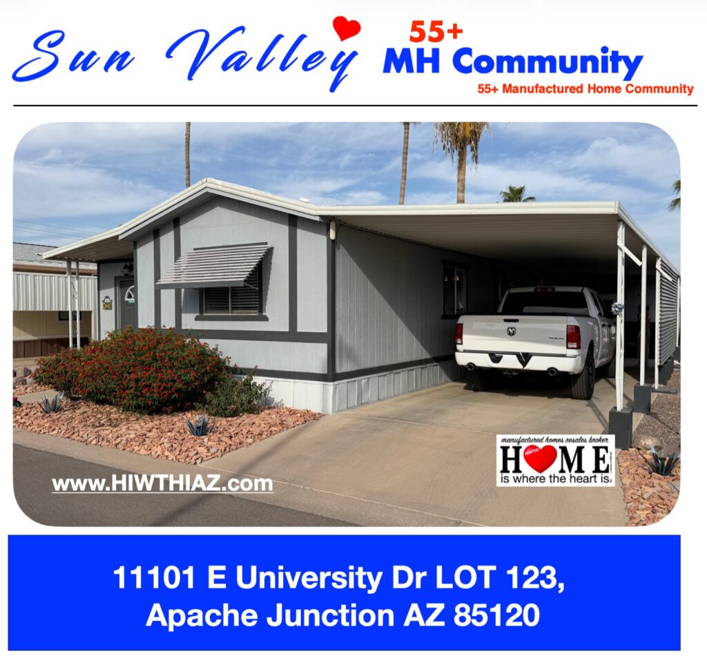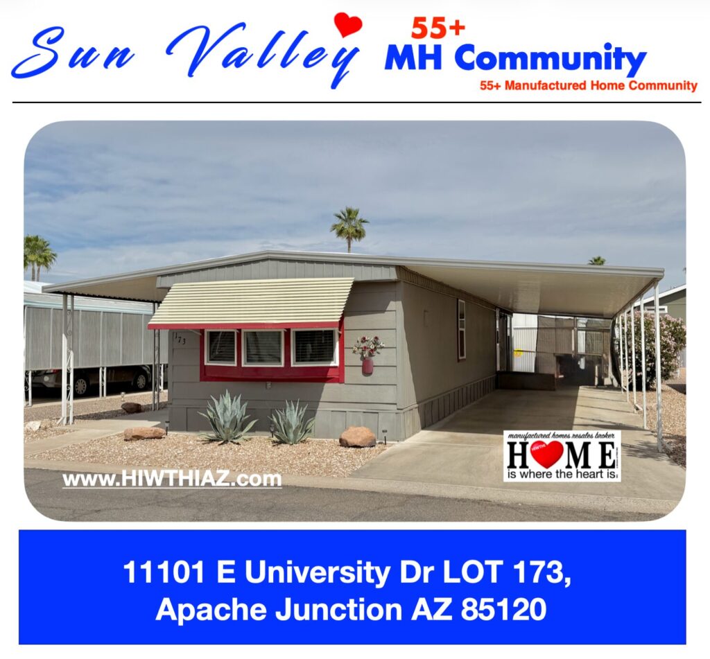 2 Bedroom 1 Bath in Sun Valley Pet-Free 55+ MH Community on Lot 173.