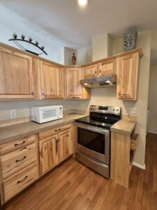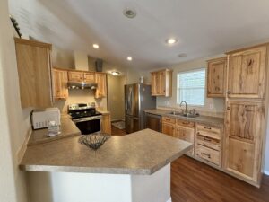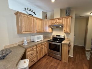Kitchen features Breakfast Bar Island, Lots of Cabinets, Counter Space. Electric Range, & Counter Microwave. Upgraded Cabinetry.
