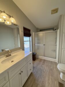 Laminate Flooring Everywhere Except Carpet In Bedrooms & Vinyl In Baths.