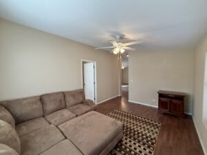 Living Room accommodates Sofas, Recliners, Occasional Tables & TV with Console.