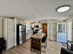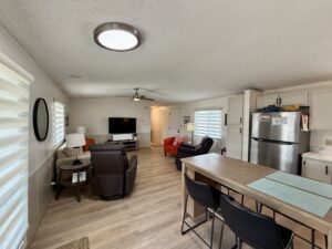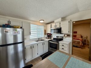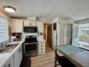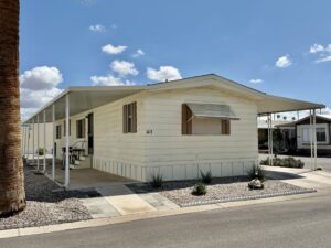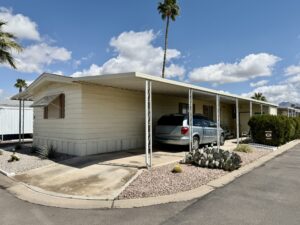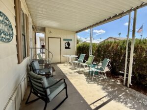 East Facing…2 Bedroom, 2 Bath Split-Bedroom Floor Plan with 2 Car Southside Carport…1986 Palm Harbor on Lot 103 situated in friendly Sun Valley 55+ Pet-Free MH Community. 1008 Sq Ft. Approx. Light & Bright. Updated Decor, Furnished.