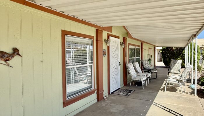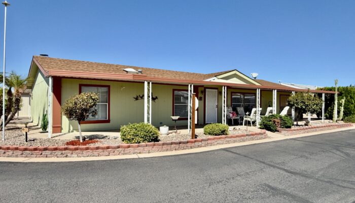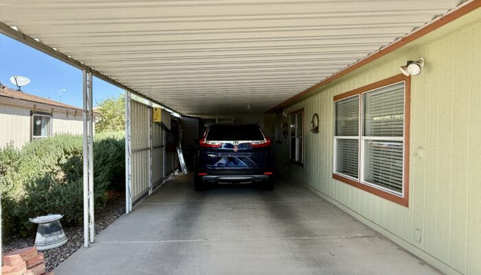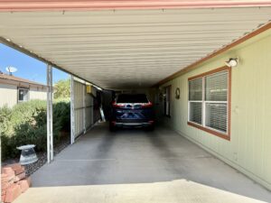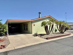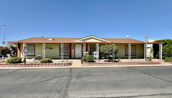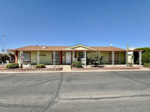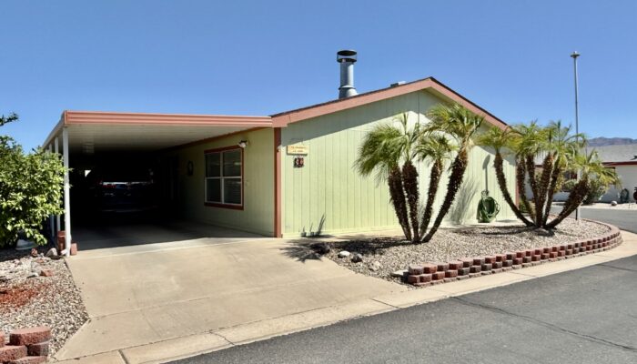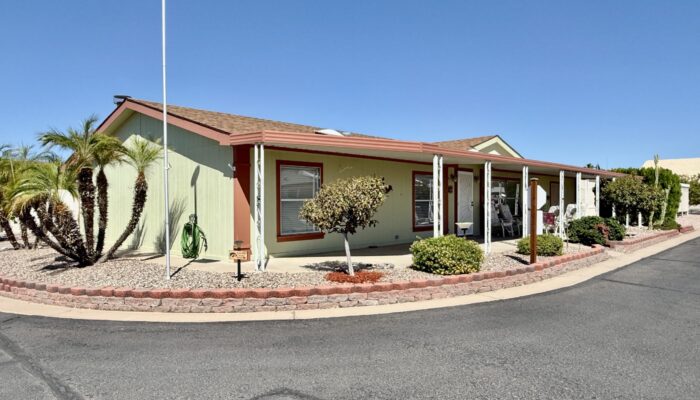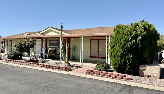 3 Bedroom 2 Bath with Large Den, Oversized Carport, Arizona Room With Windows, Ground-Set Home in Quiet & Friendly 55+ Saguaro Canyon Village MH Resort. 1996 Schult on Lot 37. 1,792 Sq Ft Approx. Unfurnished.